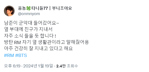 This is what ARMYs clearly feel about RM after his first 5 weeks of enlistment. Through photos in military uniform shared on SNS, fans expressed surprise at his poise and military demeanor. Fans are looking forward to seeing RM's true sol∂ιєr look when he returns.