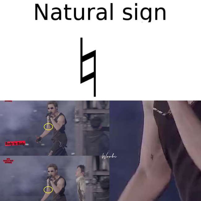At first, due to the unclear view, there were many speculations about its full design, including guesses that it might be related to the BTS or ARMY logo. However, upon closer inspection, fans realized that it was actually the natural sign in music.