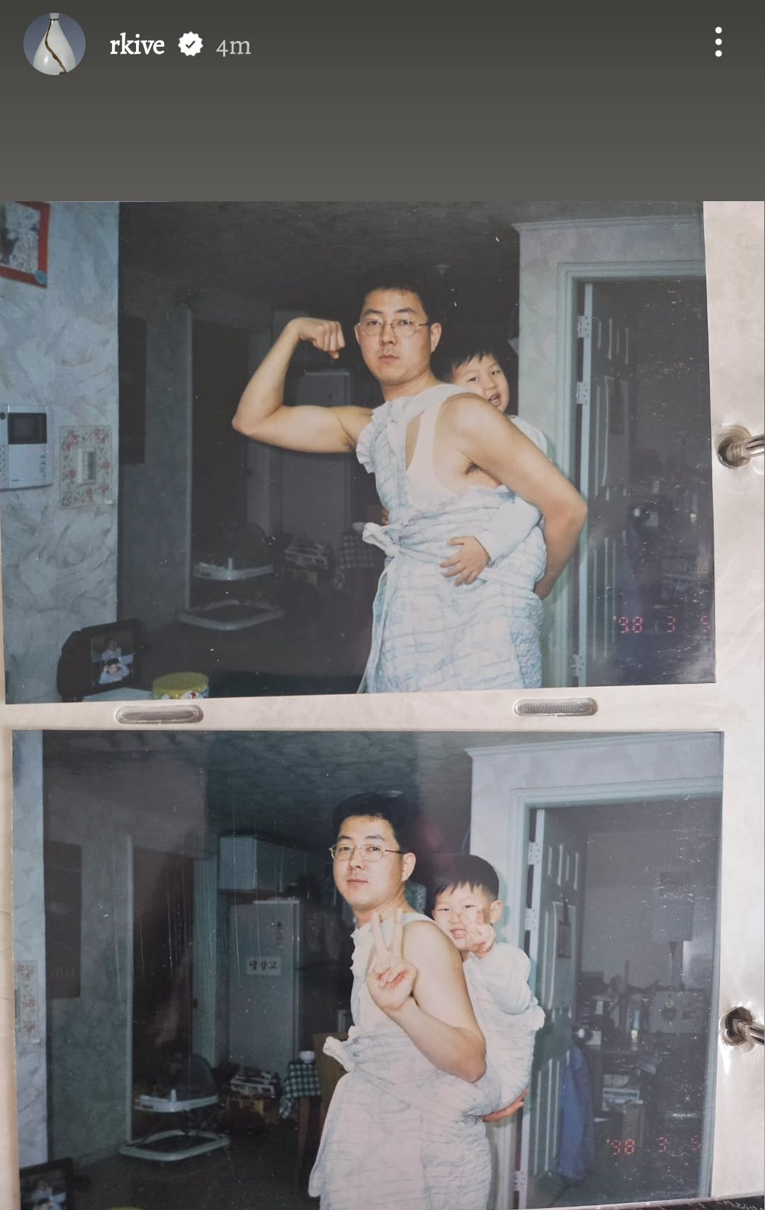 Specifically, on January 20, RM shared new childhood photos of him and his father in an Instagram story. In the photo, RM's father is posing for the camera while carrying little RM on his back. According to the photos’ timestamps, RM was just three years old at the time.