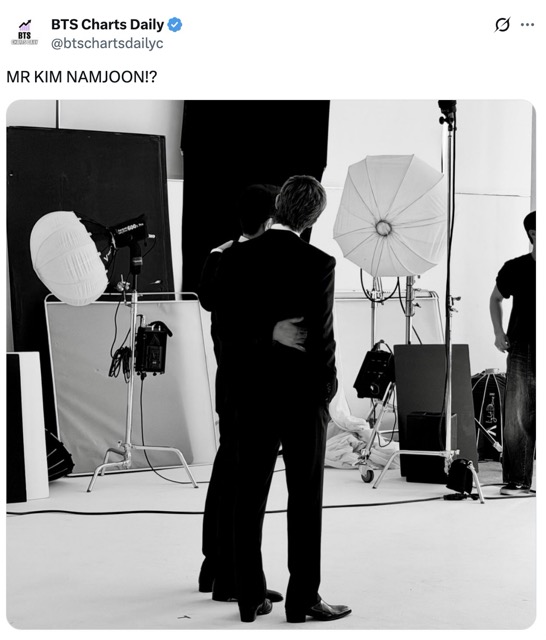 On December 26, RM uploaded a photo without any caption. The image, taken from behind, shows him standing in a studio alongside another man. Neither of their faces is visible, yet their close distance and body language suggest a strong sense of intimacy. What drew the most attention, however, was the song attached to the post: “Husbands” by the band Geese, which immediately left viewers puzzled and curious.