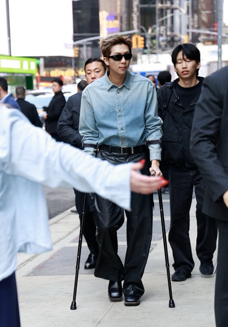However, the member who drew the most attention was RM, as fans noticed that he had to use crutches while moving around that day. Although the leader no longer had to wear a brace as he did in the early days after his injury, his use of crutches and slower-than-usual movement suggested that the injury might not be recovering well, causing concern among fans.