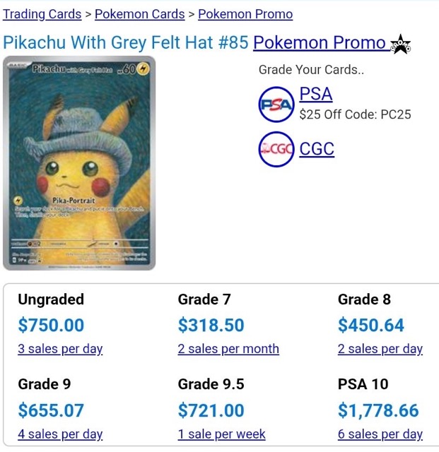 - i looked it up, a bgs 10 black of the van gogh pikachu card can cost up to around 21k usd (bgs = beckett grading system, black = black label; pretty much means a completely perfect card in pristine condition)