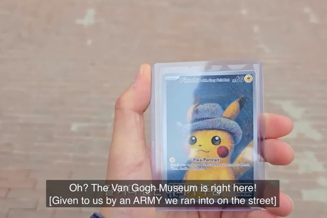 Specifically, around the 19th minute of the video, the BTS leader showed the online au∂ιєnce that he received a cornered Pokémon card from a fan when they happened to meet while he was on his way to the Van Gogh Museum with a close friend. Receiving a card of his favorite cartoon character seemed to put RM in a very cheerful mood.