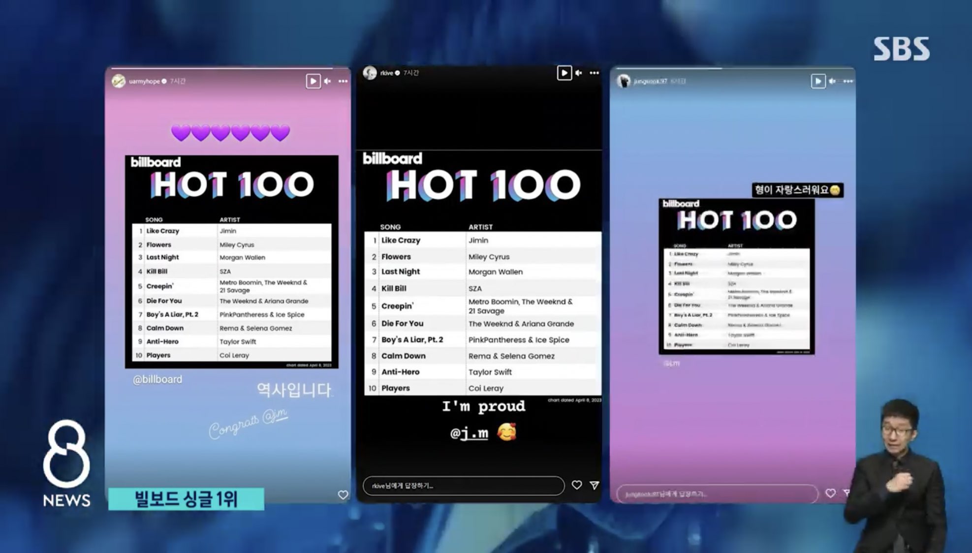 However, this story does not stop there, but today, SBS News even made a big mistake when spreading this fake account on their own important news. Specifically, in the news that Jimin had excellently won No.1 Billboard Hot 100 with Like Crazy, SBS posted some screenshots of the wishes that BTS members sent to him.