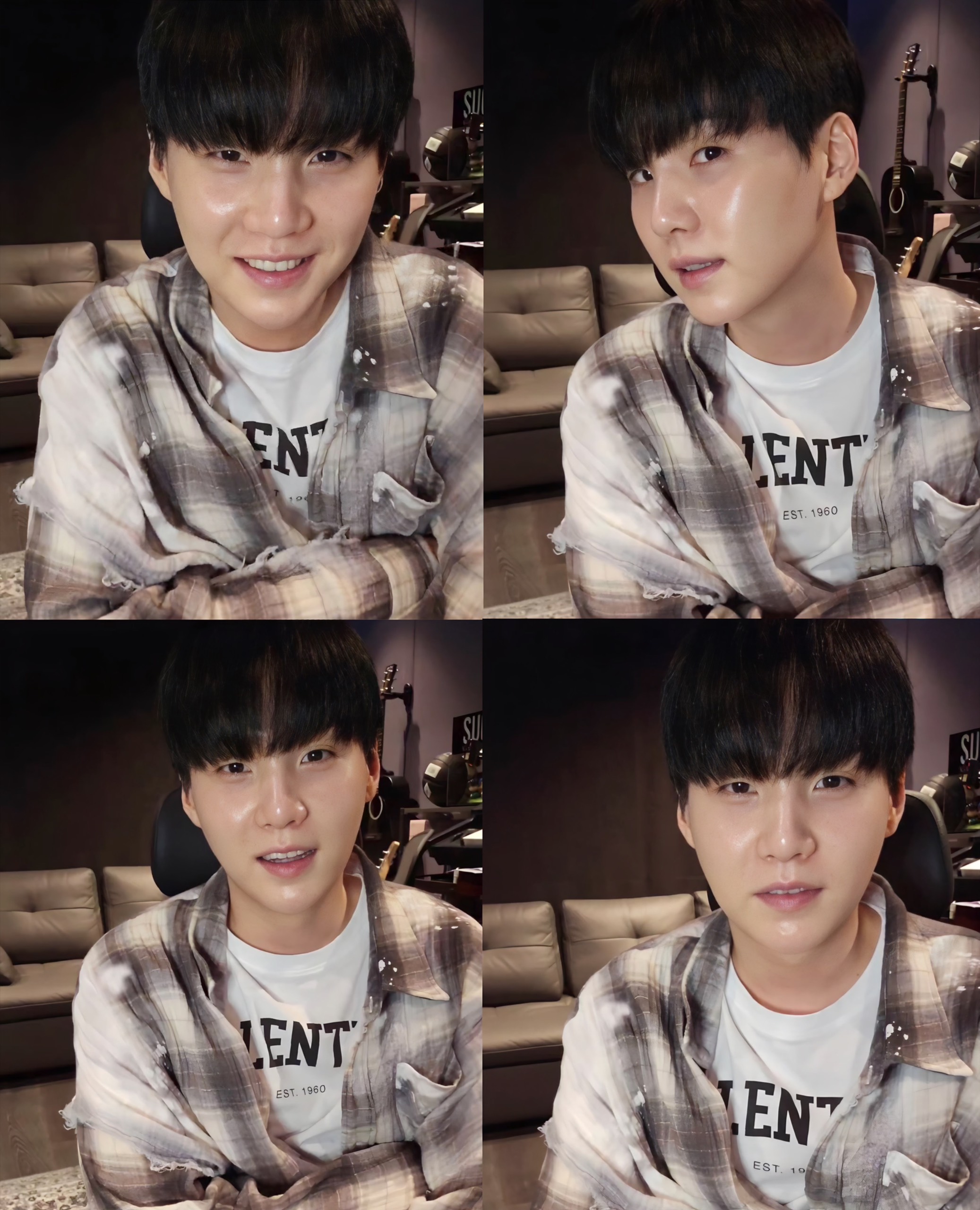 On this day, SUGA appeared with lightly trimmed hair and said: "Hello, it's nice to see you. It's me, SUGA. I cut my hair a bit. It's been a while since I've had such short hair. The staff didn't recognize me! They asked me, "Who are you?"”and said he turned on the livestream to report on his survival.