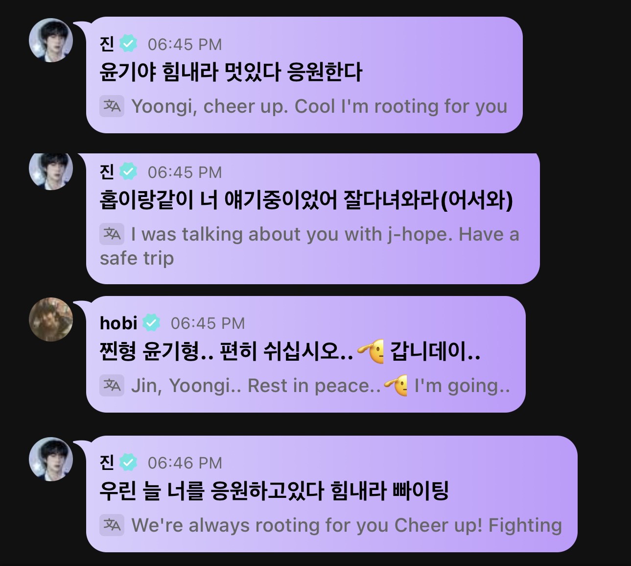 Meanwhile, SUGA became the third member of BTS to perform m̴i̴l̴i̴t̴a̴r̴y̴ service, after members Jin and j-hope. Therefore, he also received a lot of encouragement and follow-up from the group members.