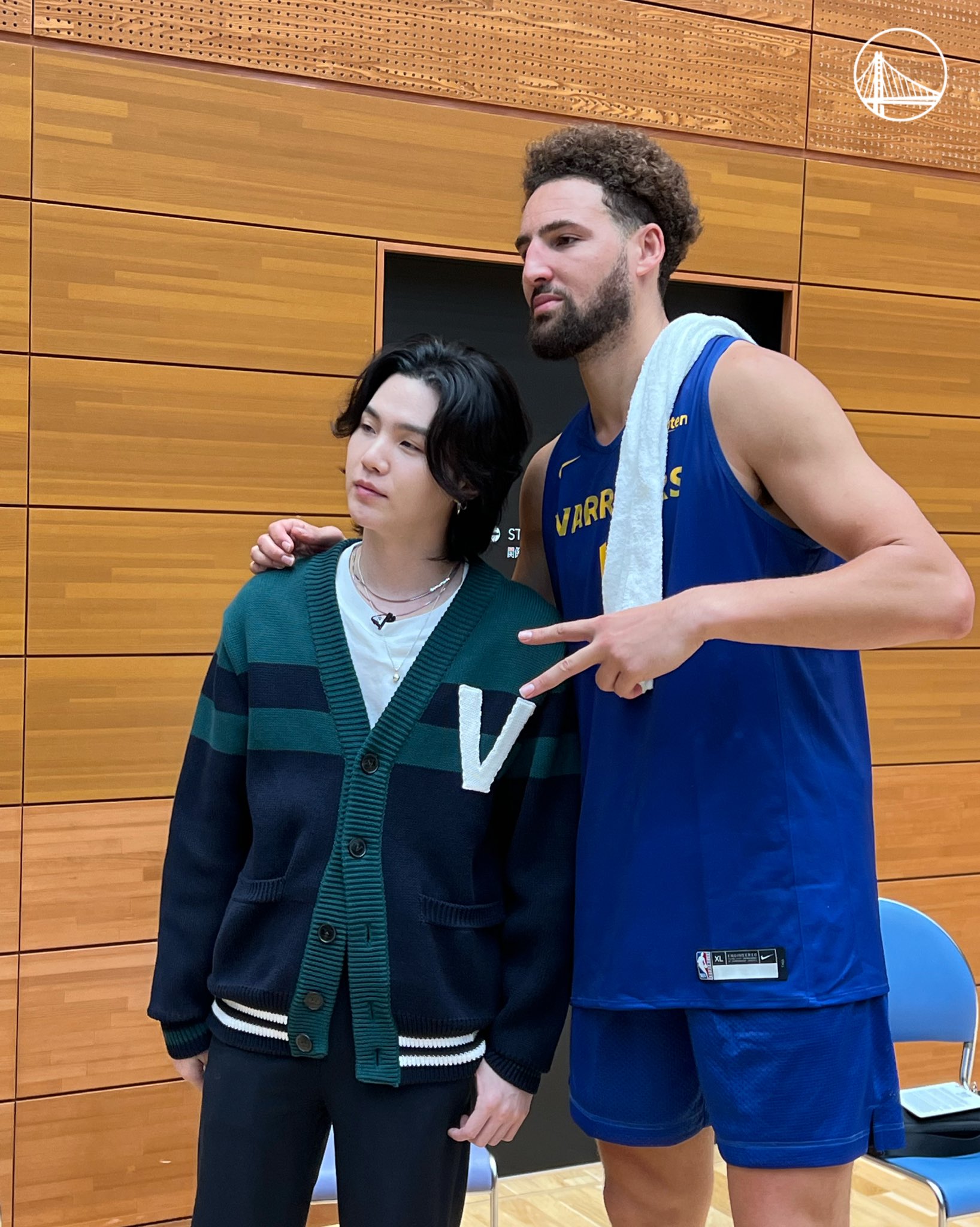 In addition, SUGA also took pictures with NBA basketball superstars like Andre Tyler Iguodala...