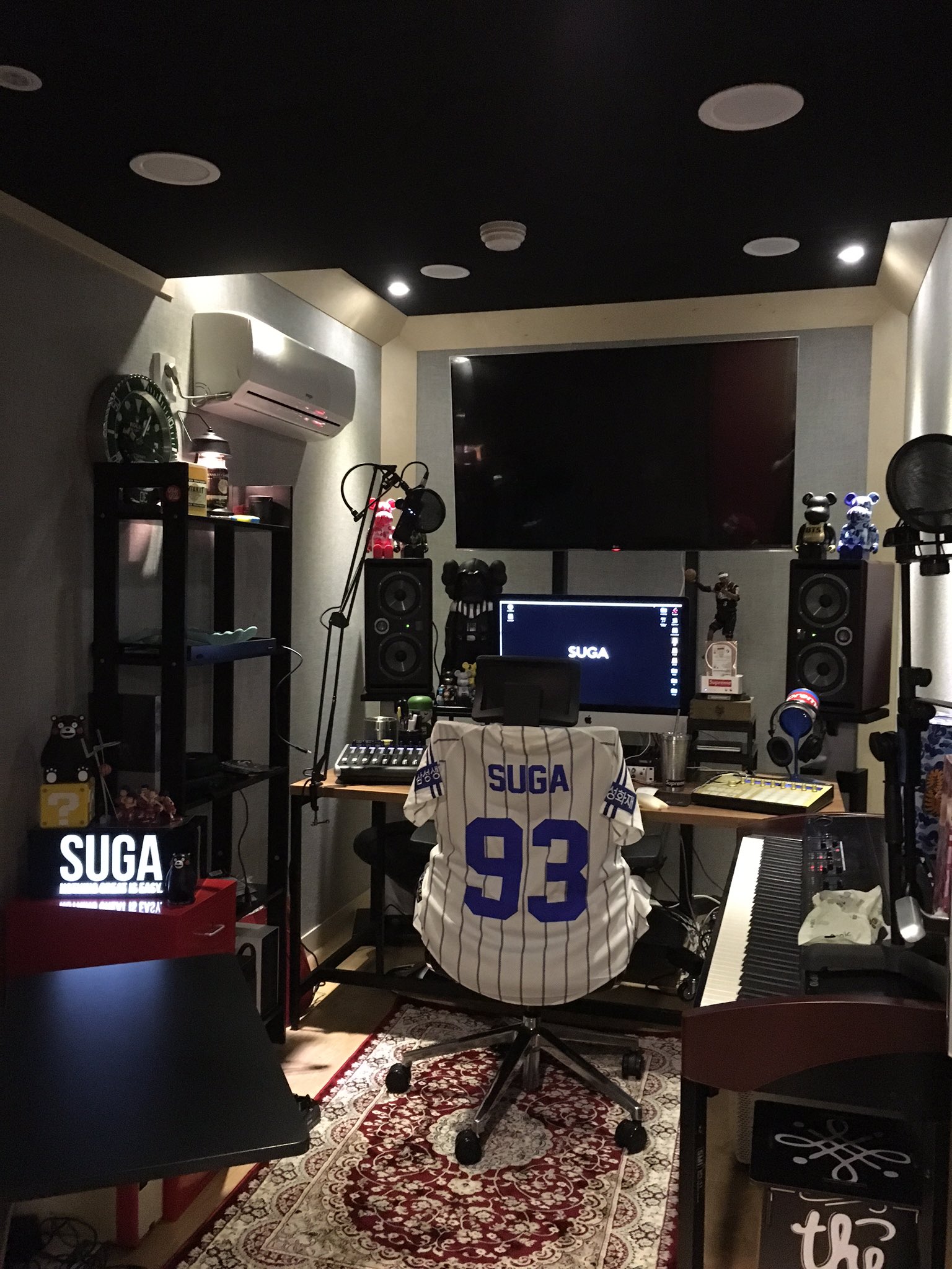 Even in photos taken by his Genius Lab studio, SUGA shows an intense love for this great baseball team by hanging his Samsung Lions uniform with his name and number on the chair. He's actually a raving Lions fan.