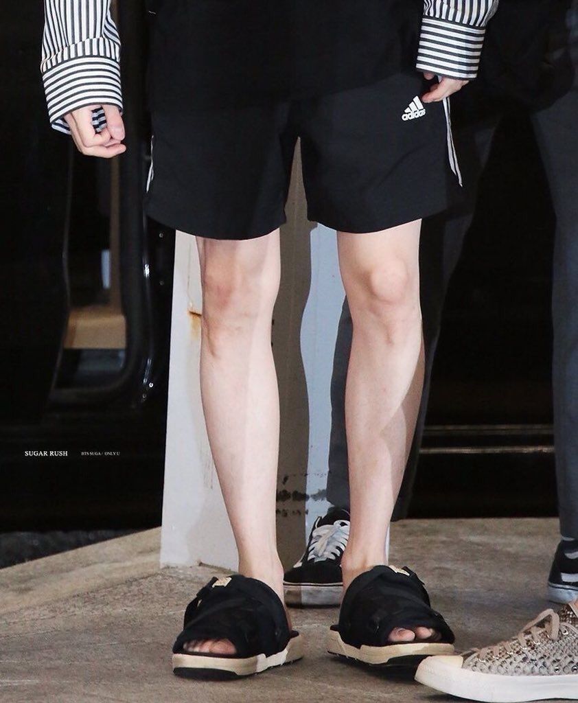SUGA once revealed that most female idols don't dare to come close and take pictures with him. The reason is because he has very ugly and smooth legs that make girls shy. Another part is that SUGA's thin and rough legs make him lose his masculinity just by looking at them.