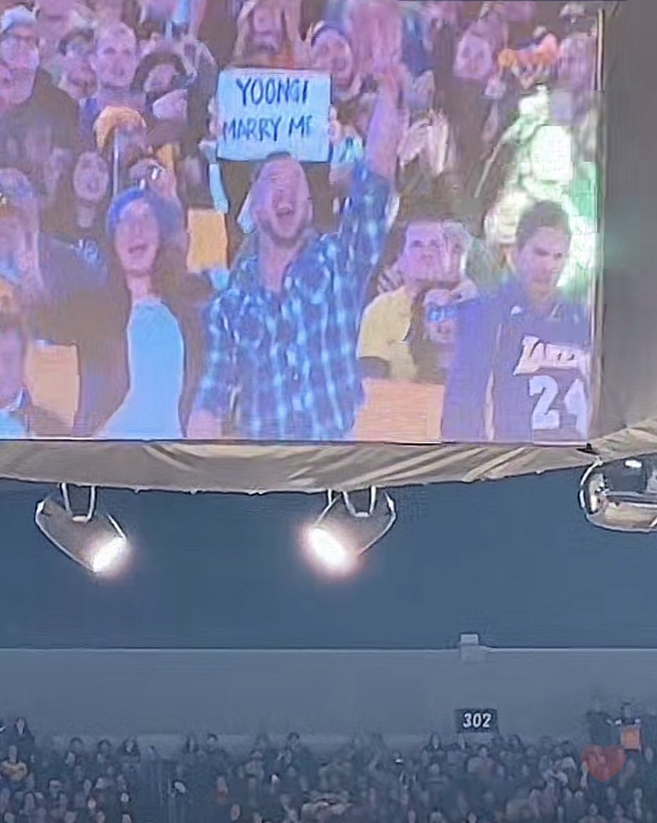 But perhaps, the most impressive and viral moment was when he reacted to a passionate fan that was suddenly shown on the big screen of the basketball court. This ARMY did not miss the opportunity when the camera approached her and held up a banner with huge words that: "Yoongi marry me".