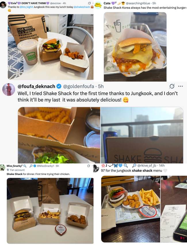 And what’s Jungkook’s nickname? — Midas Touch. So right after the Shake Shack items were featured in the global K-pop superstar’s livestream, stores around the world saw a sudden surge in orders. Naturally, fans wanted to experience the same “meal” as him. Some even said it was Jungkook who made them try Shake Shack for the first time.