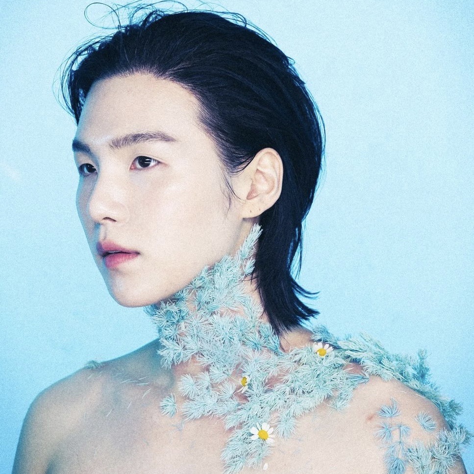 In particular, today, he generously posted on his personal Instagram 4 photos with a unique idea. In the photo, SUGA has bare the upper part of the body and decorated it with flowers and grass to look very fancy and artistic.