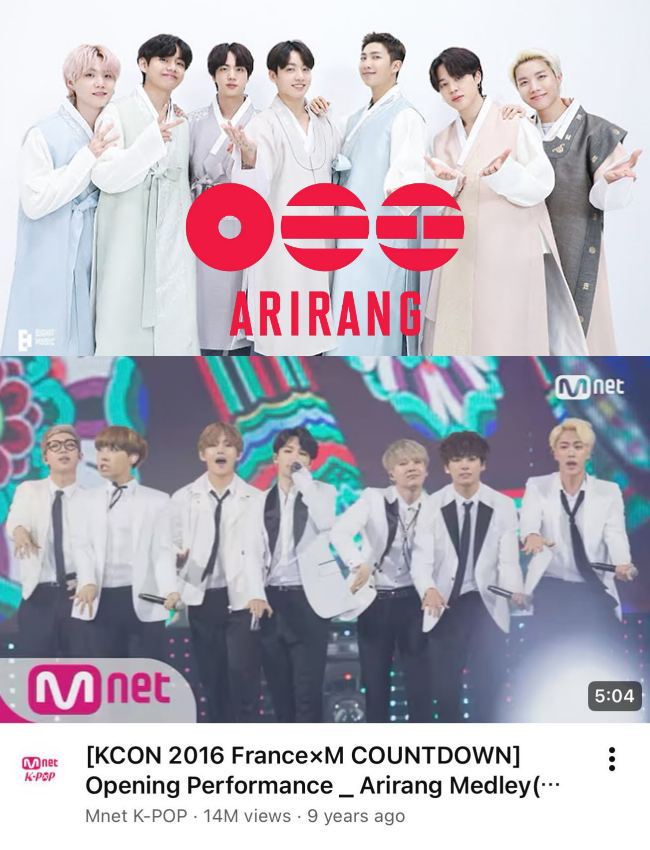 In fact, Arirang is far from an unfamiliar song. It is a melody that has long been familiar and widely recognized by multiple generations of global K-pop fans. BTS themselves previously performed a modernized version of “Arirang” as the opening stage at KCON fяαи¢є x M! COUNTDOWN in 2016.