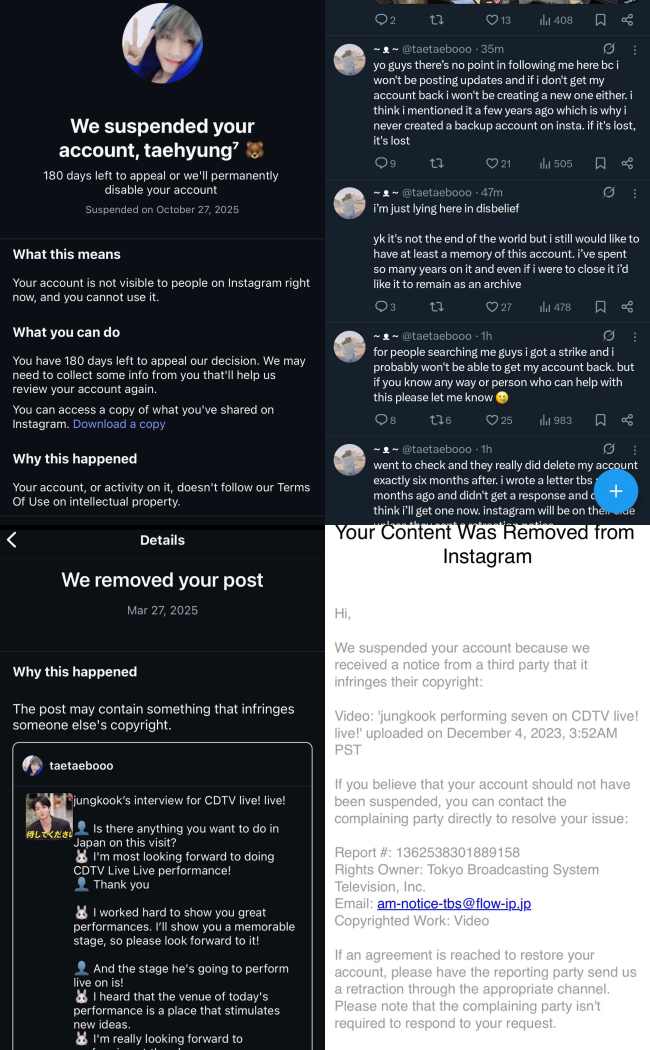 She explained that she had shared the video solely for the purpose of translating its content into English for fans to understand, without realizing there was a copyright issue. It wasn’t until the account was taken down and she received a notification from Instagram that she became aware of the problem.