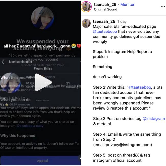 @taetaeboo is currently working with Instagram to resolve the issue in hopes of recovering her account, though it seems there isn’t much hope. Some fans have suggested launching a petition or campaign within the fandom to appeal to Instagram on her behalf.