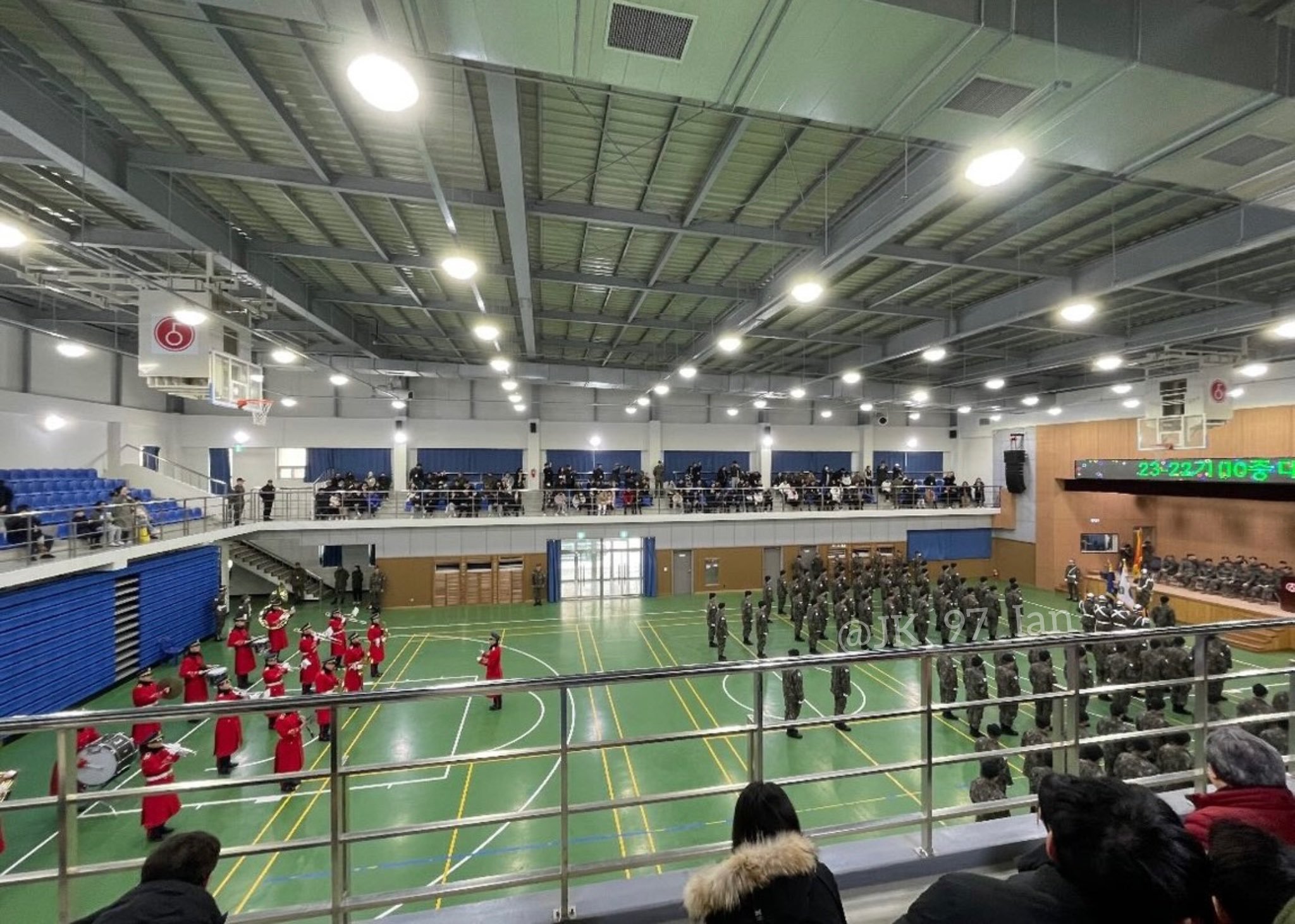 This photo was taken when the ceremony started, the BTS members were standing in line with dozens of other new recruits. Family members of the members are invited to observe the entire process from the stands. This photo is the only image where fans can know that the two graduated on the morning of January 17.