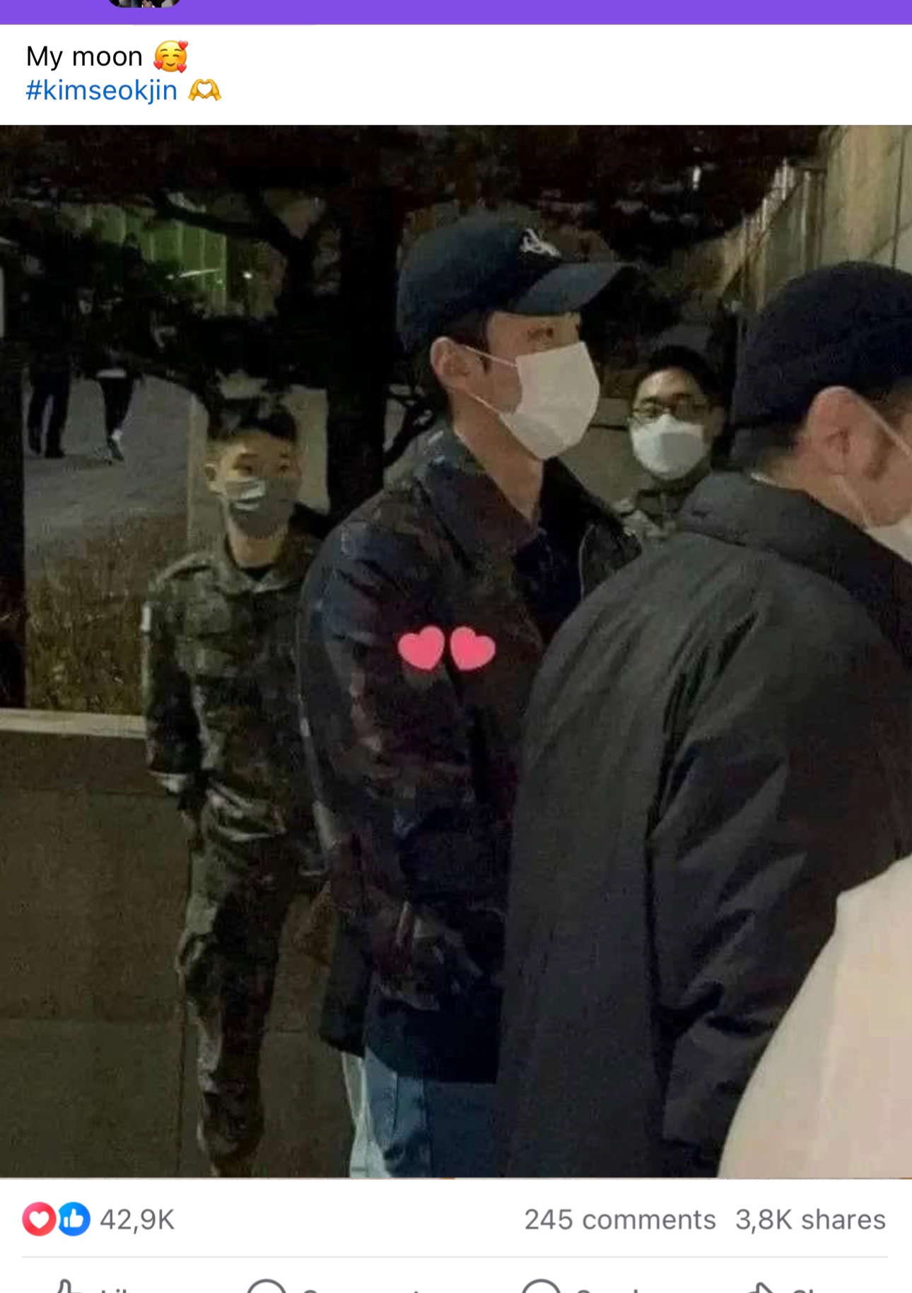 There are a lot of fans leaving comments about him like "I miss you, Seokjin", "His hair grows a little", "Waiting for the day he returns", "He looks good these days"....The photo is not of high quality while the angle of the photo shows that the person in the photo looks almost like Worldwide Handsome. However, the story started to become more complicated when a few fans realized soмєтнing unusual about the photo.