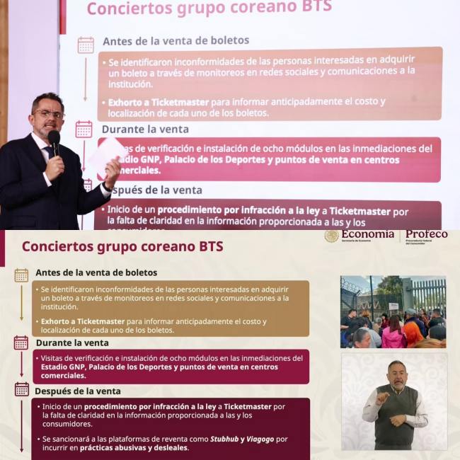Fortunately, the collective efforts of Mexican ARMYs eventually received a meaningful response. On the 26th, PROFECO announced that it would file a lawsuit against Ticketmaster for failing to provide clear information regarding BTS ticket sales, and that it would penalize resale platforms such as StubHub and Viagogo for abusive and unfair practices. Iván Escalante, head of the agency, also stated that they are preparing guidelines to ensure transparency in pricing, seating charts, and final fees. A new complaint channel dedicated specifically to concerts—conciertos@profeco.gob.mx —will also be activated.
