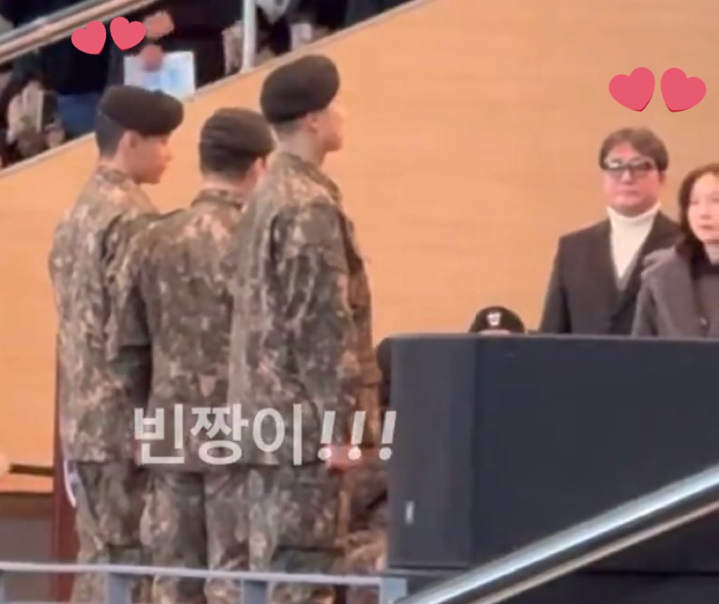 In particular, one video attracted attention when sharing the moment when the members' parents were also present at this important event. Although RM's parents were not clearly captured in the video, fans believe that his parents were very happy to see their son successfully complete the training course. Meanwhile, the proud expressions on V's parents' faces appeared briefly in the frame.