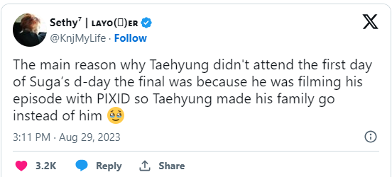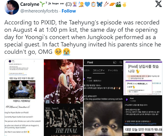 Netizens realized that when Pixid called for participants, it was filmed on August 4, which was the day of SUGA's concert, which is also the reason why he couldn't attend SUGA's concert from the first day. Similarly, it wouldn't be surprising if V had a lot of schedules preparing for solo activities in the following days, meaning he couldn't attend because he was too busy..jpg)