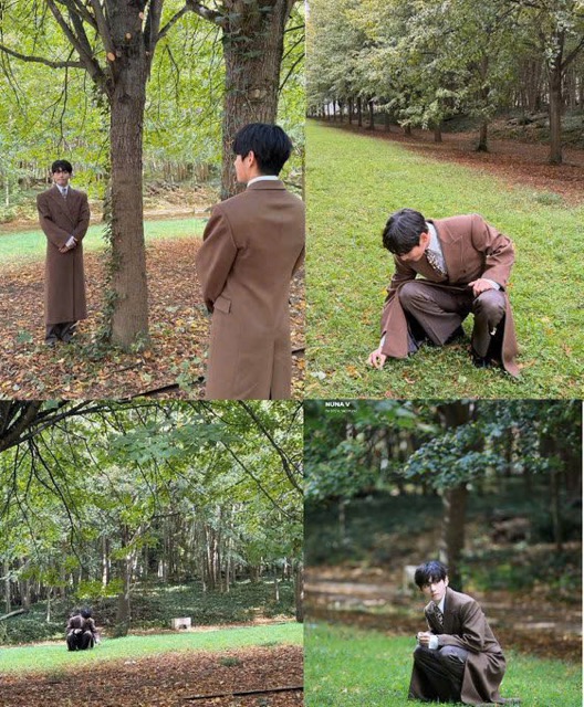 Moreover, several clips also showed him giving short interviews with top fashion magazines in the forest and even playfully interacting with reporters afterward.