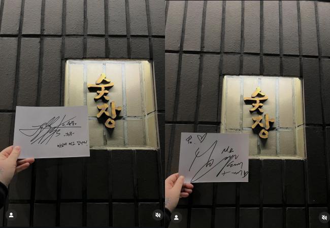 On January 27, the owner of a newly opened кσяєαn BBQ restaurant named Soot-jang (숯장) caught fans’ attention by posting a photo of Jungkook’s autograph, accompanied by the message, “I enjoyed the meal and I’m heading out,” displayed in front of the grill restaurant’s sign. The restaurant also wrote in the caption: “We were honored to have BTS’s Jungkook visit us here at Soot-jang! We promise to always provide excellent service and the finest flavors. At your service!”