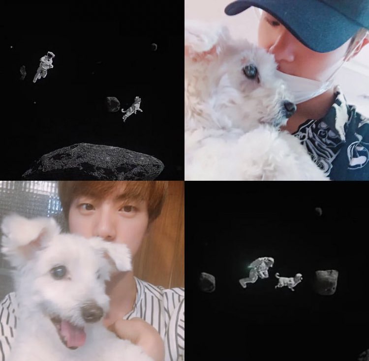 Jin spent so many years with this little friend of his. And when the dog died, Jin was heartbroken and cried a lot. The image of the dog and Jin in the astronaut suit made ARMYs extremely touched: