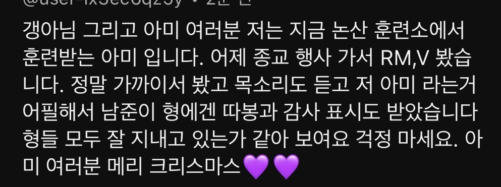 In particular, in recent hours, an ARMY who is training with V and RM at the Nonsan Training Center talked about two members of the group in the latest activity. They had their first m̴i̴l̴i̴t̴a̴r̴y̴ activity together since joining training center during Christmas break.