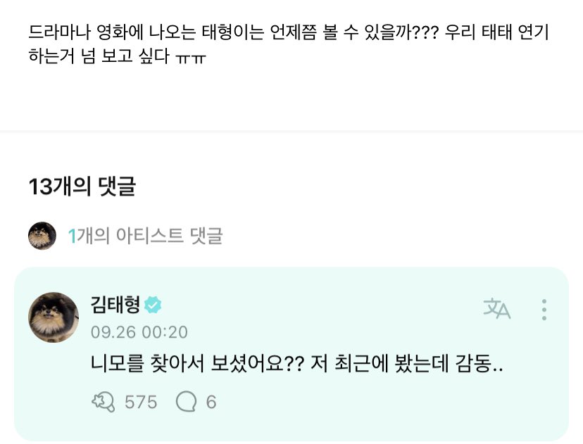 Today, while V was interacting with fans on Weverse, an ARMY boldly asked V: "When will I be able to see Taehyungie in a drama or movie ??? I want to see our taetae act so much ㅠㅠ"