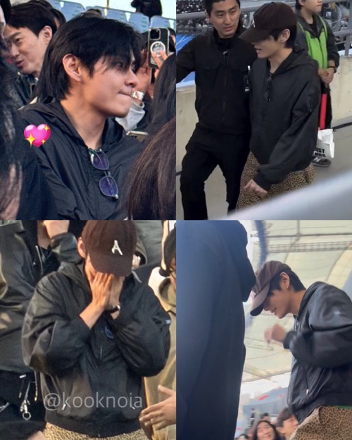 Although he opted for a relatively simple casual style, the idol quickly became the center of attention thanks to his standout fashion sense. He wore a basic black jacket paired with a dark brown baseball cap, using leopard-print pants as the highlight, creating an outfit with a distinct personal flair. As soon as photos were shared, the item immediately became a hot topic among fans.