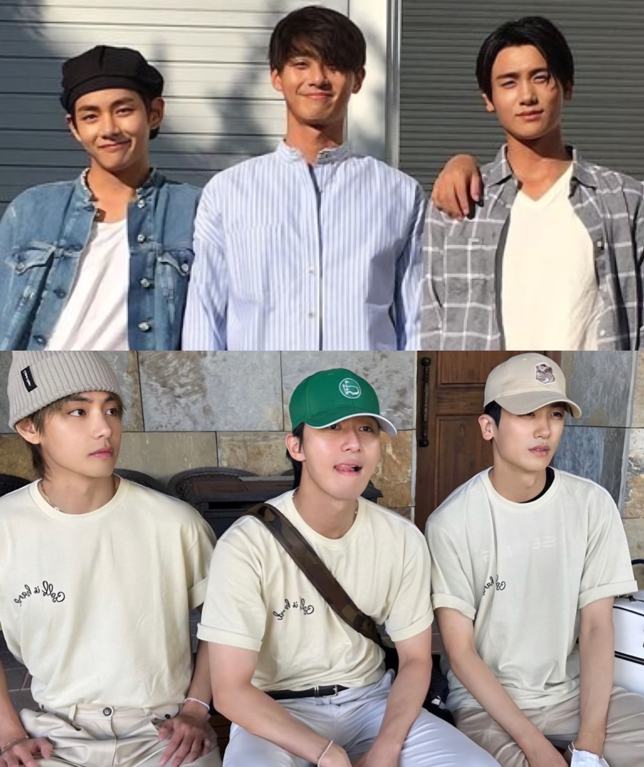 But especially famous and often appearing together on SNS is V's Wooga Squad. It is known that their friendship was formed in 2016 when V co-starred with Park Seo Joon and Park Hyungsik in the movie Hwarang. They then gathered together with Choi Wooshik and Peakboy and decided to use "Wooga Squad" as their team name. Wooga Squad's friendship has become even more famous since their successful participation in In The Soop and Seojin's.