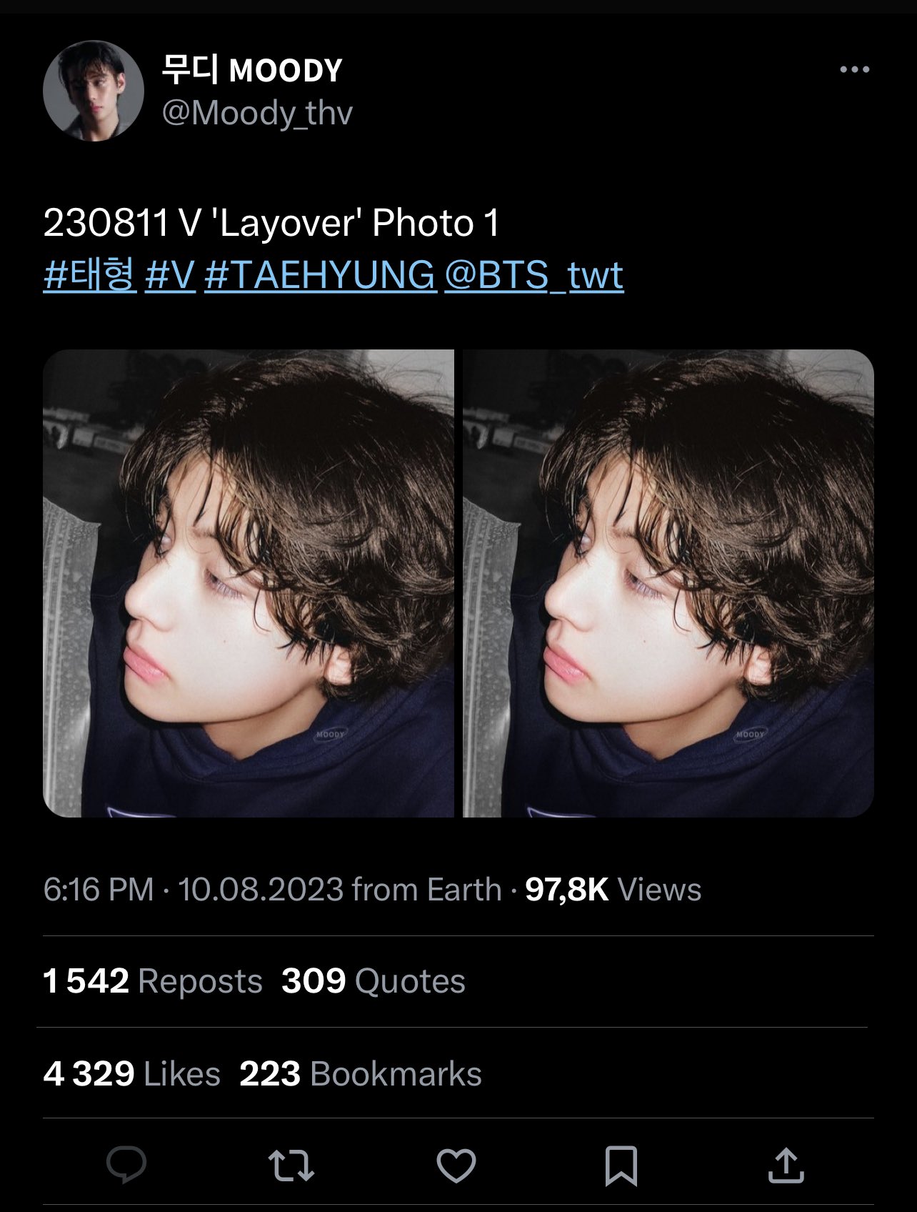 He even left a watermark as a way of paying respect to the author and it surprised fans once again. The way V reposted it on his own Instagram account is like a tribute to the person who made this photo and also shows how much he seems to love the way that ARMY refreshed the photo.