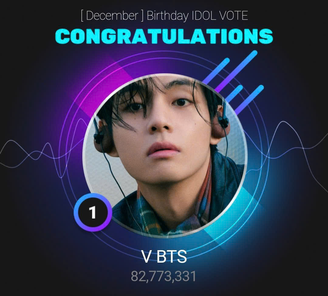 Specifically, global fandom platform UPICK held the "December Birthday Idol" poll from October 21 to November 4. The poll featured idols with December birthdays, and V secured first place with 82,773,331 votes, narrowly surpαѕѕing ZEROBASEONE's Kim Jiwoong or ENHYPEN's Sunghoon.