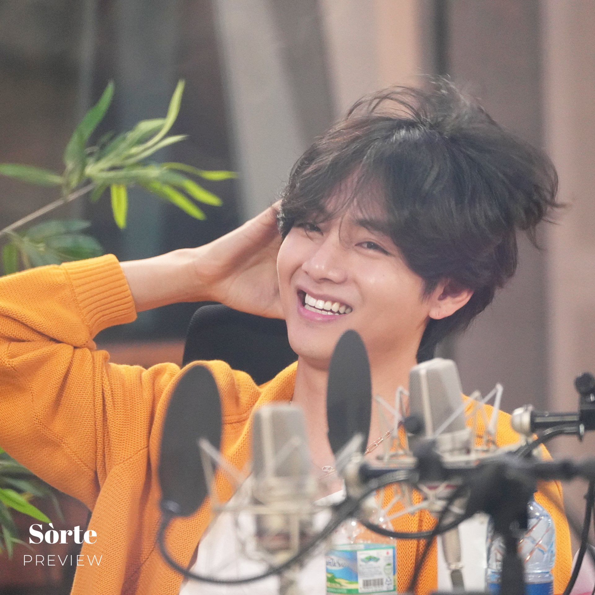 During the promotional break during the broadcast, V saw and spent a lot of time interacting with fans who were watching the live broadcast from outside the studio. Although V can be seen from inside, fans cannot hear him due to the layer of soundproof glass. But this also didn't stop him from expressing his love to his fans.