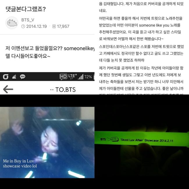 She also used to write letters to V on the BTS Daum Café fan page and received replies from him in those early years.