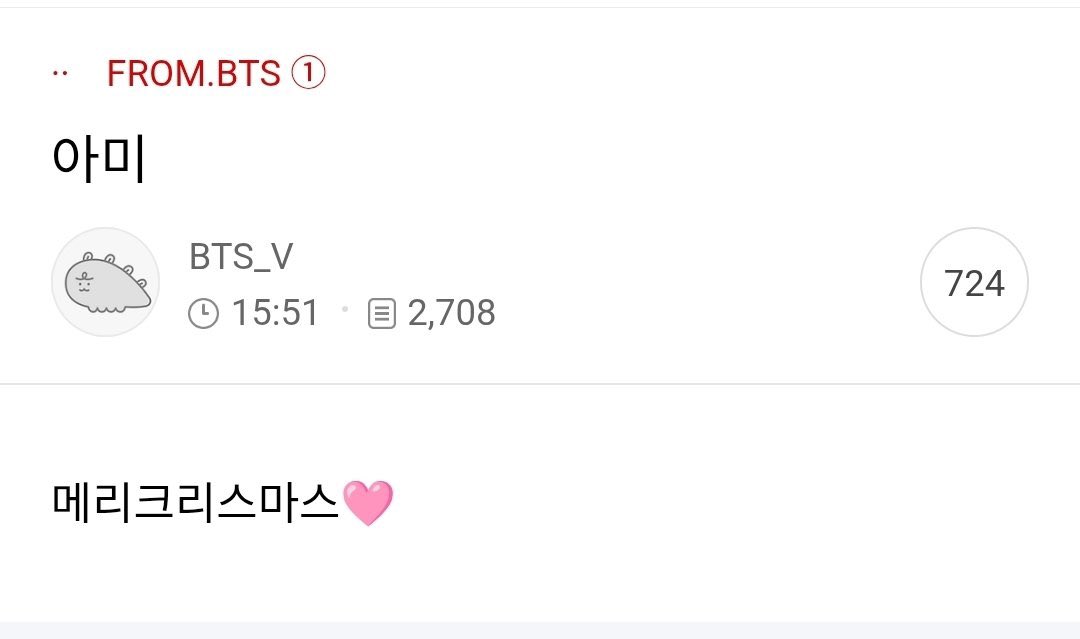 V brought up this story because, previously, on the 24th, he had visited the long-unused Fancafe account and left a message: “ARMY. Merry Christmas. How is everyone?” Immediately, a fan responded, surprising V since Fancafe hasn’t been widely used in recent years. Excited, he exclaimed, “Wow, you're watching this!” The fan replied, “I'm seeing this keke, the notification rings you know.” V responded sincerely, “Oh, what are you doing now? This place is really nostalgic, right?”