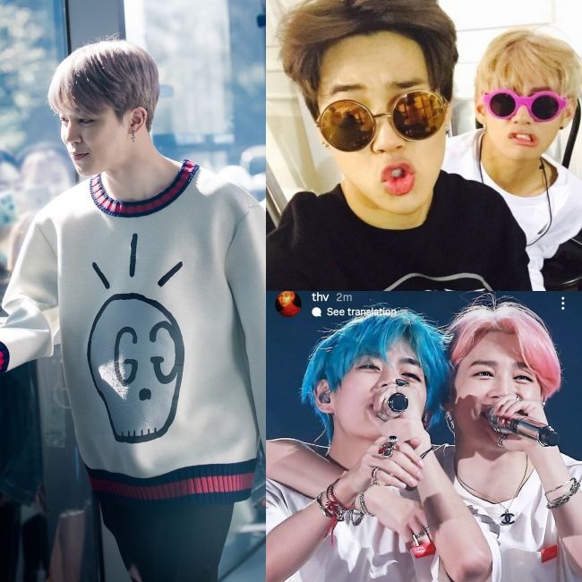 - Jimin’s reaction to V’s Gucci gift was the sweetest thing ever. You can really feel how much they mean to each other — true friendship goals!