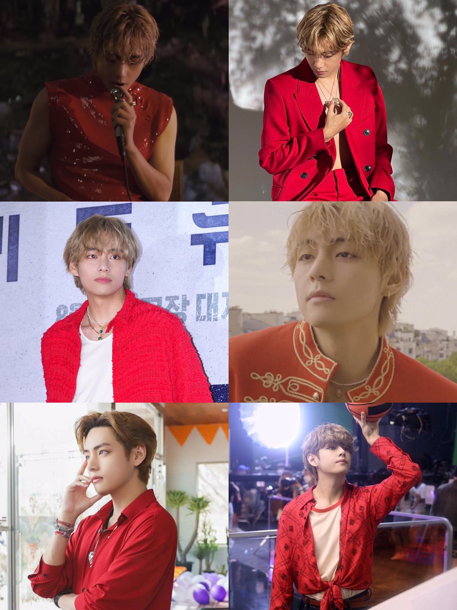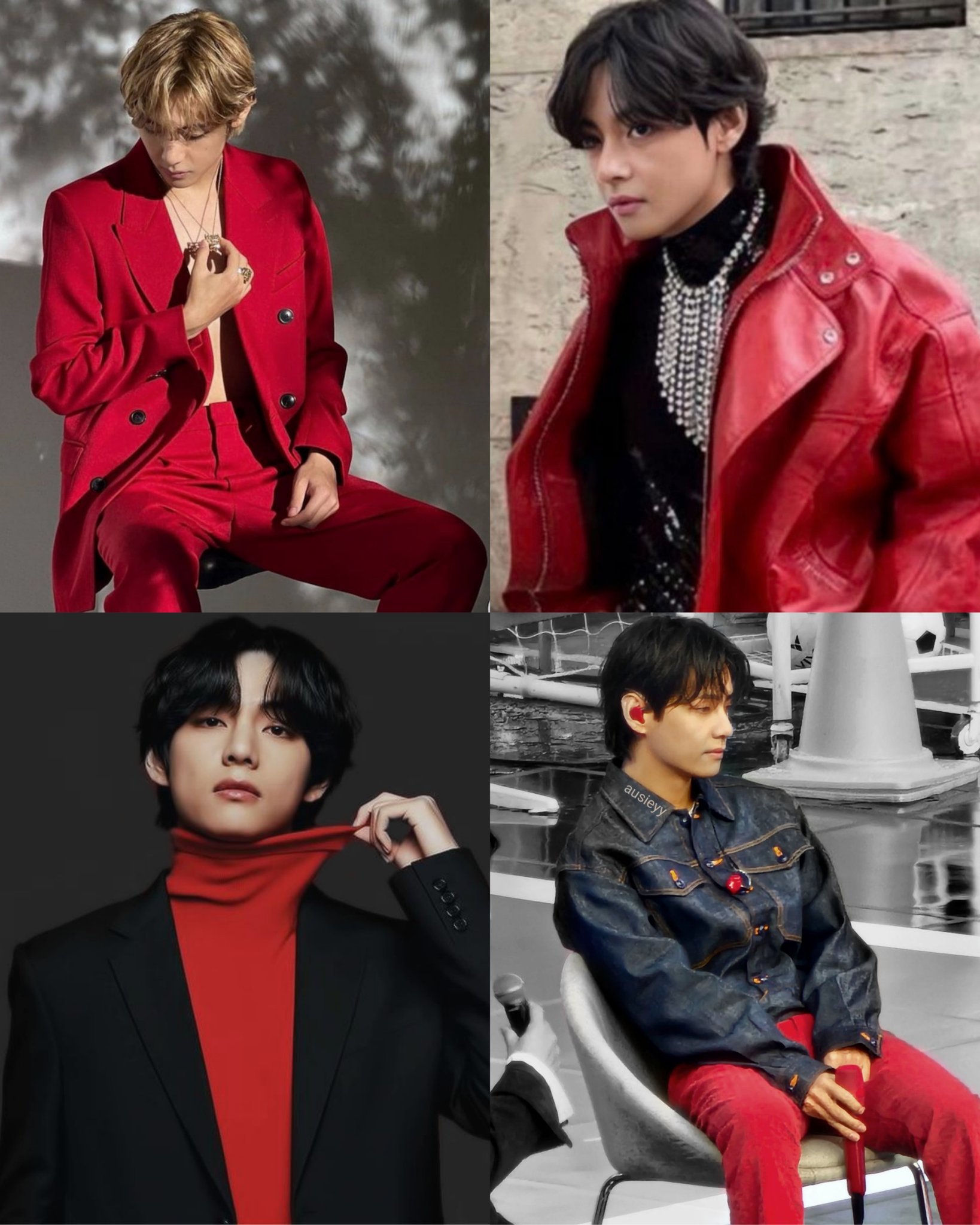 Specifically, V pointed out that he often wears red clothes, sometimes pants, shirts or even both, and also uses red accessories many times. This comes from his belief in fortune-telling, saying he only has "water". He said that: "I like 'saju'. I was told to find 'fire' because there was no fire in my fortune but only water, so I am wearing in red."