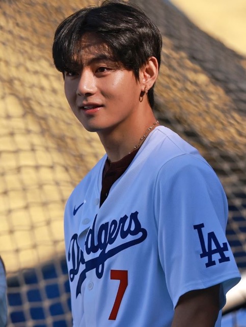 While V was staying in Los Angeles with the BTS members at the group’s songwriting camp to prepare for their new album set to be released next spring, he received an invitation to throw the ceremonial first pitch for the game between the LA Dodgers and the Cincinnati Reds at Dodger Stadium on the 25th (local time).