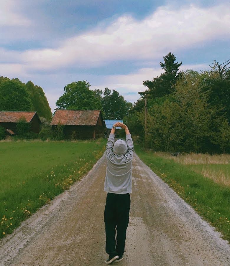 Although he got ℓσѕт, it became an opportunity for him to enjoy and spend time exploring the beautiful scenery and embark on an exciting adventure through the Swedish countryside. While waiting for the staff to pick him up, V also took a few photos, including this one, as a keepsake.