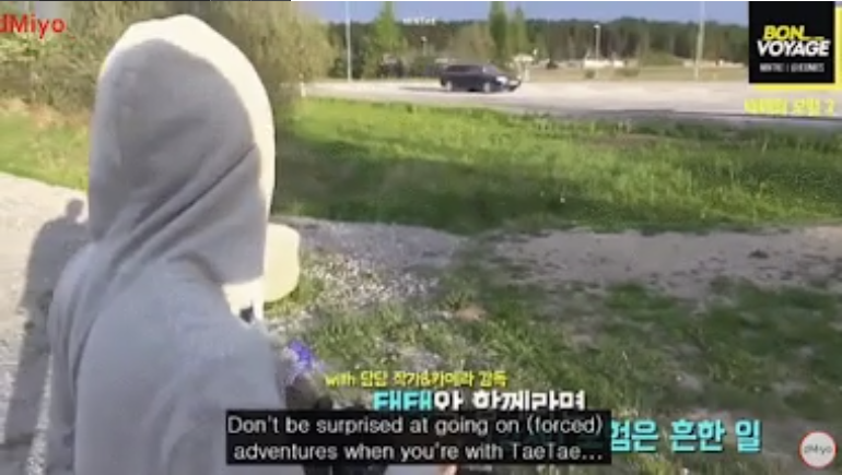 V was the last member to arrive in ѕωє∂єи, and at that time the members had already moved on to the destination, so V had to find his own way there but ended up getting on the wrong bus…