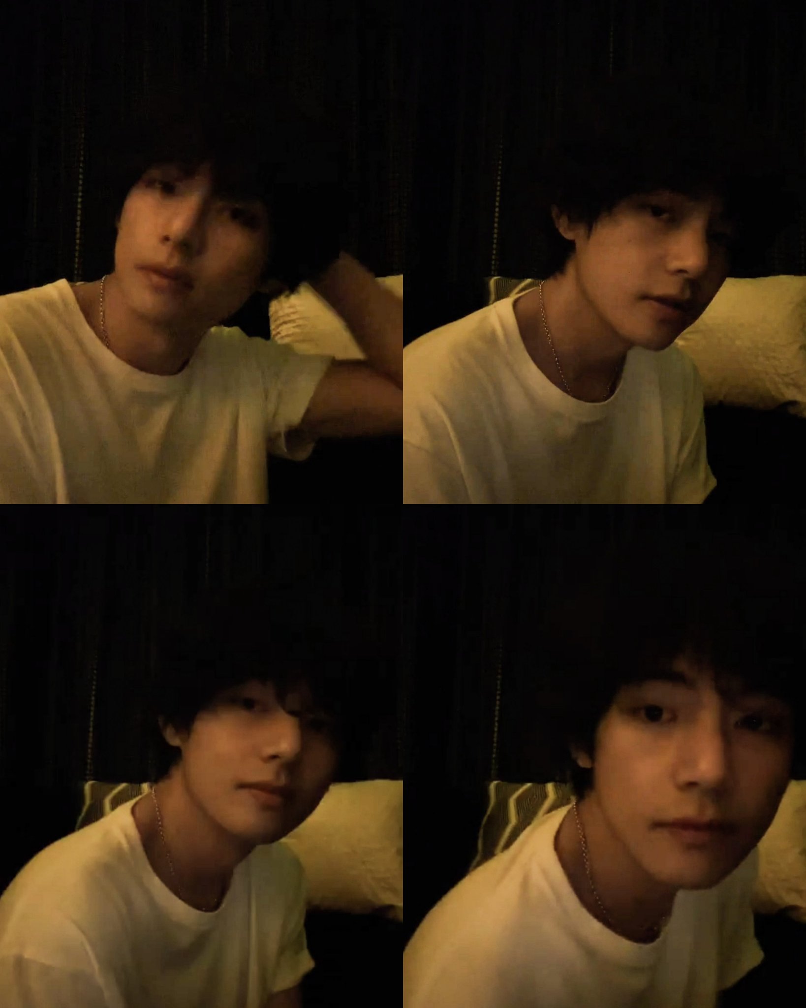 So, a few hours ago, V appeared on a late-night live broadcast (KST) to meet fans and chat with them even though he was very sleepy. V has slightly updated what he's been up to these past few days and seems to be taking a break from his hard work.