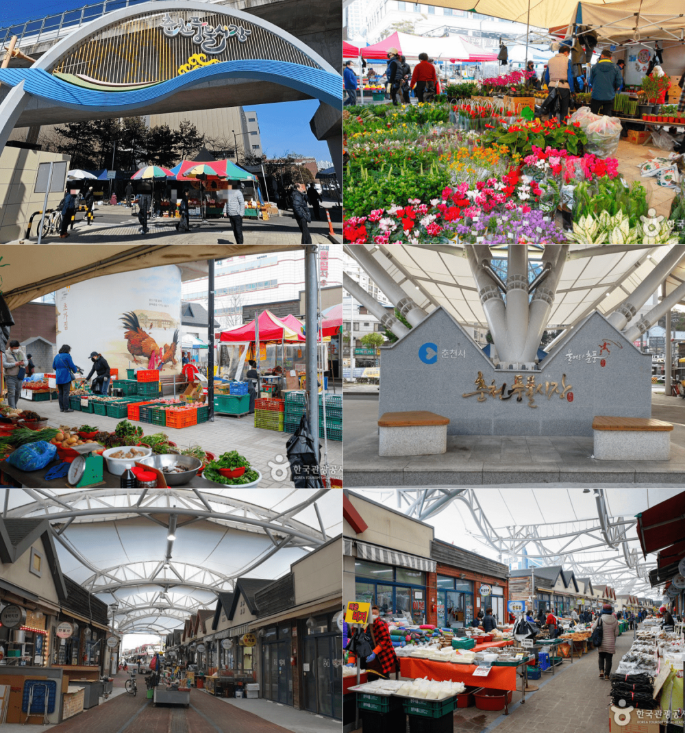 Unlike most traditional markets, Chuncheon Pungmul Market is surrounded by high-rise buildings, creating a distinctive and striking atmosphere. On market days, it is filled with a variety of street stalls selling fresh produce, seafood, snacks, and miscellaneous goods.