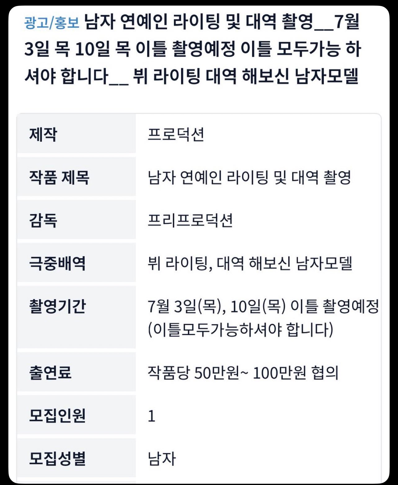On this day, some кσяєαn fans υиєχρє¢тє∂ly discovered a new advertisement seeking a "V stand-in" for filming on July 3 and 10. The candidate is from a different production company and must have previous experience as a stand-in for V in commercials and lighting.