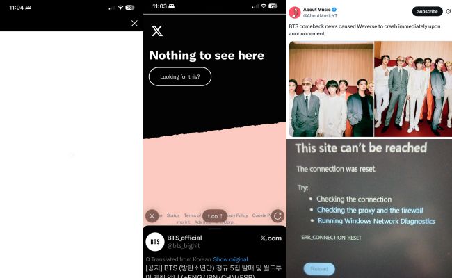 The peak of the explosive reaction came on January 5, when BigHit Music officially released its first formal announcement via the fan platform Weverse, confirming that BTS would release their fifth full-length album at 1 p.m. KST on March 20. After notification alerts signaling news from BigHit Music appeared on their phones, many ARMY reported being unable to access the Weverse platform. Several social media accounts stated that the platform had temporarily gone down due to a sudden surge in traffic.