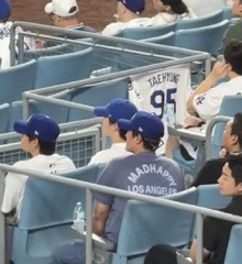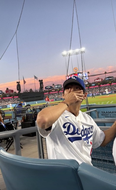 On this day, V threw the ceremonial first pitch at the game between the LA Dodgers and the Cincinnati Reds held at Dodger Stadium in Los Angeles, USA. He was also seen sharing a warm hug with נαραиese baseball legend Ohtani before the game began.
