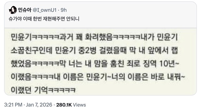 Specifically, an old post has recently gone viral within the fandom, shared by someone who claimed to be SUGA’s high school friend. This person humorously revealed that Min Yoongi had also gone through a phase of “fourteen-year-old syndrome” and had quite a “colorful” past. He wrote: “Min Yoongi, his past was actually pretty ‘colorful’ (eventful). I’m Min Yoongi’s childhood friend, and back when he had a major case of 8th-grade syndrome (중2병 – Middle School 2nd Year), he used to rap right in front of me lol.”