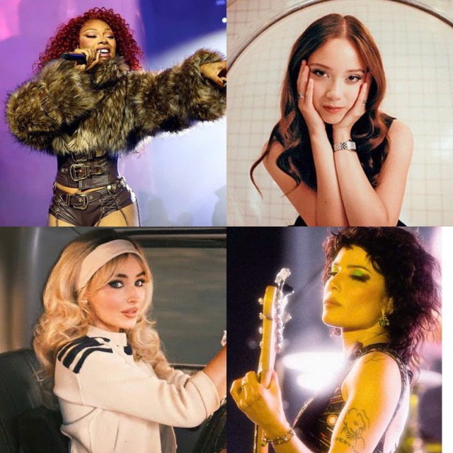 The four female artists listed include Megan Thee Stallion, Halsey, Laufey, and Sabrina Carpenter. According to leaked information, these artists have been involved in the music production process with BTS since November last year.