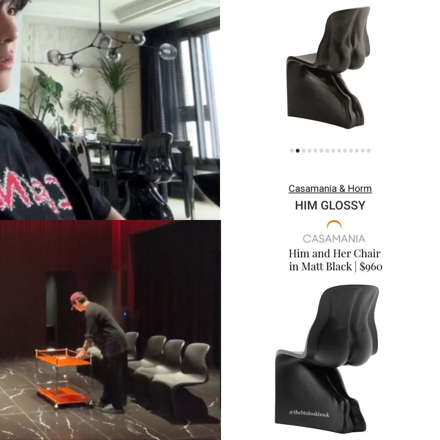 In particular, ARMYs quickly noticed a shared interior design choice between the two: a piece of furniture that might just be the most uniquely designed—and most “expensive”—item in their homes: a chair shaped like a human butt!