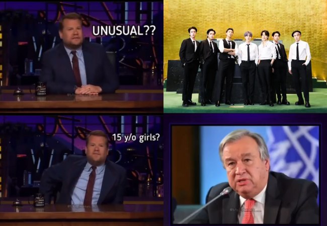 Before looking at the trend currently spreading on X, I want to revisit the context that led to this situation. If you remember, around September 2021, on an episode of The Late Late Show with James Corden, the famous host commented: “It actually marks the first time that 15‑year‑old girls everywhere found themselves wishing that they were [Secretary‑General] António Guterres,” referring to BTS and the group’s highly attention-grabbing performance at the United Nations General Assembly.